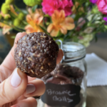 I just can’t keep these in stock, so the recipe is on repeat in my kitchen. To any mom of a growing teen: perfect energy and nutrient dense snack for in between school and sports when they want something that tastes good and will give them some fuel to power through until dinner. Ingredients are easy to keep stocked in the pantry and the balls don’t take long to make – just need a good blender or food processor- Vitamix is what I use. You may sneak a few and here in there when craving a sweet without the wheat.